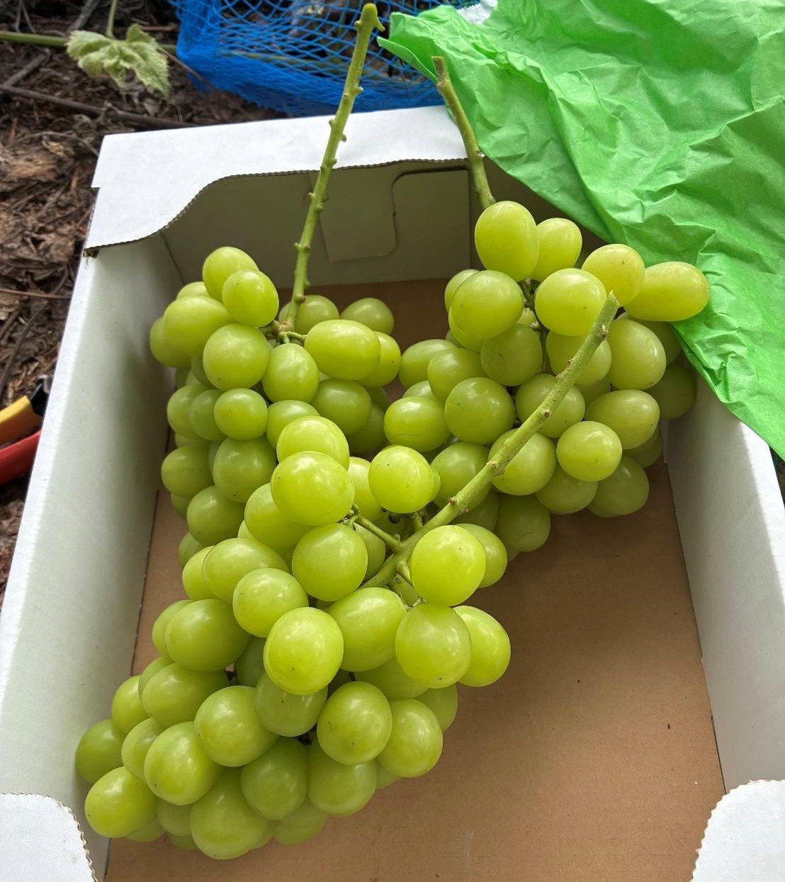 数年前に植えたシャインマスカットが、たわわに実をつけてくれる様になりました。