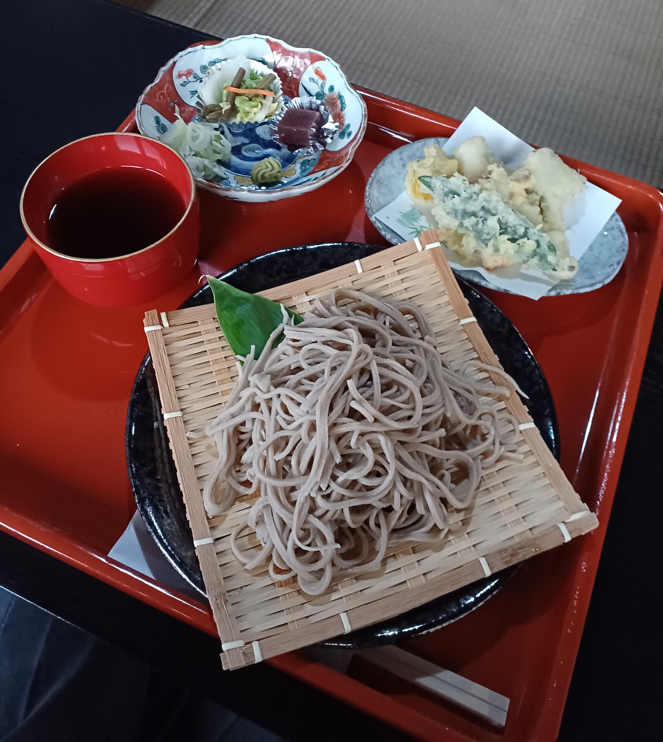 研究会の方々に感謝しつつ、昔ながらの御膳で食すお蕎麦は、