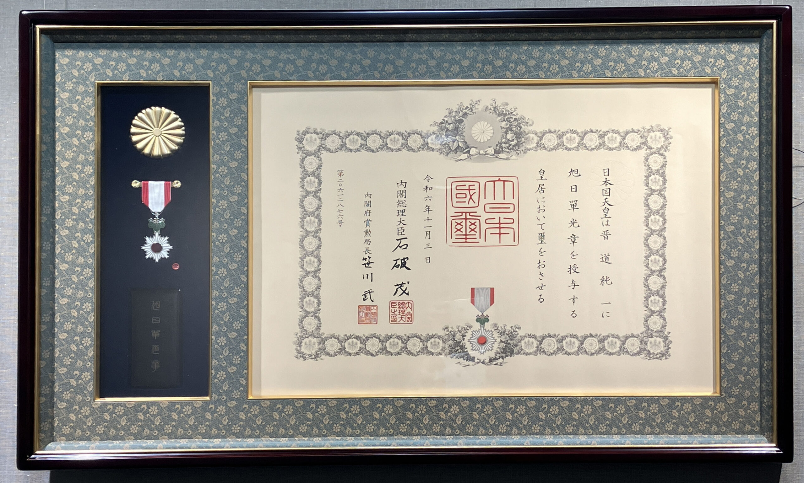 弊社代表取締役社長 晋道純一が、令和6年秋の叙勲「旭日単光章」を受章しました。